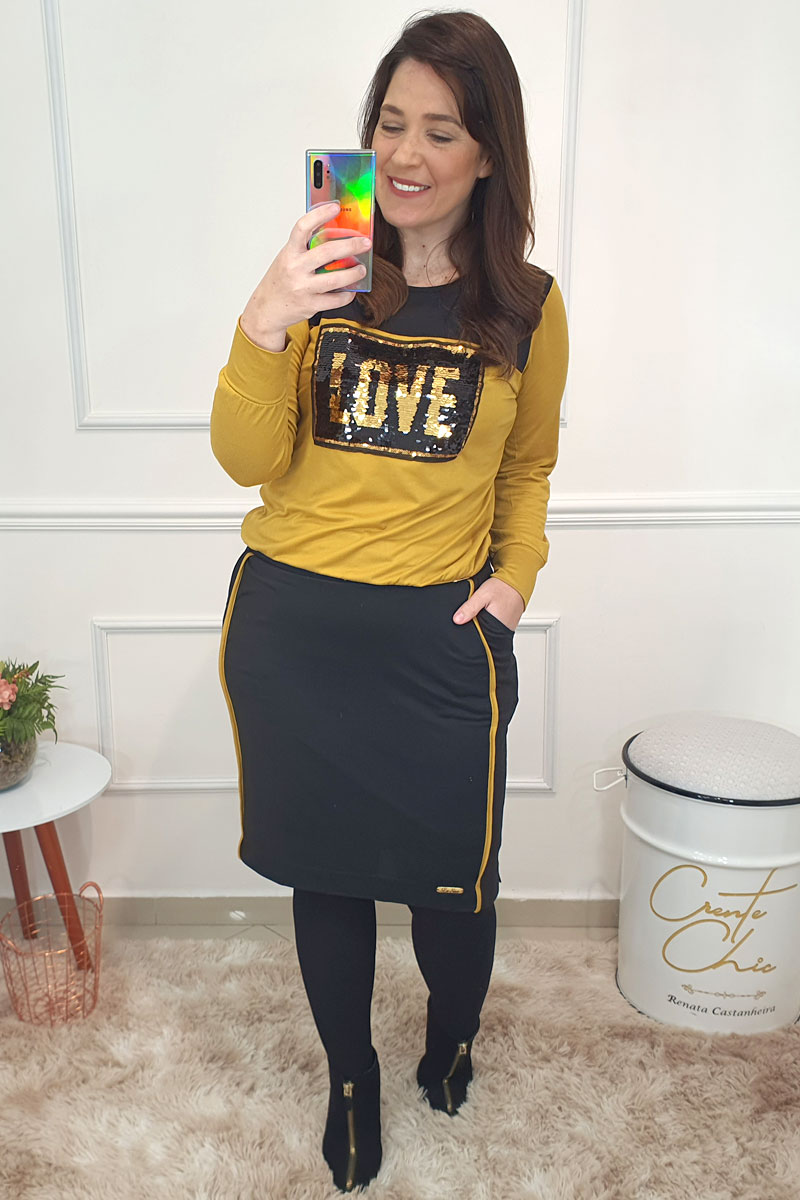 9050 Blusa (Love) C/ Punho na MangaTecido: Suede LightComposição: 95,5% Poliéster e 04,5% ElastanoCo..