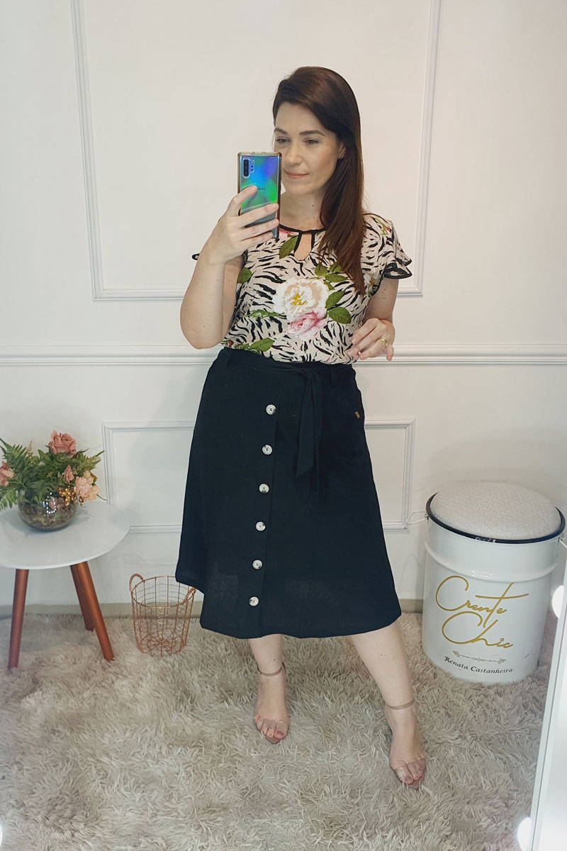 9119 Saia Social Midi Evasê Tecido: LinhoComposição: 46% Viscose, 24% Poliéster, 20% Linho e 10..