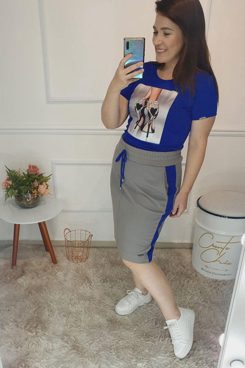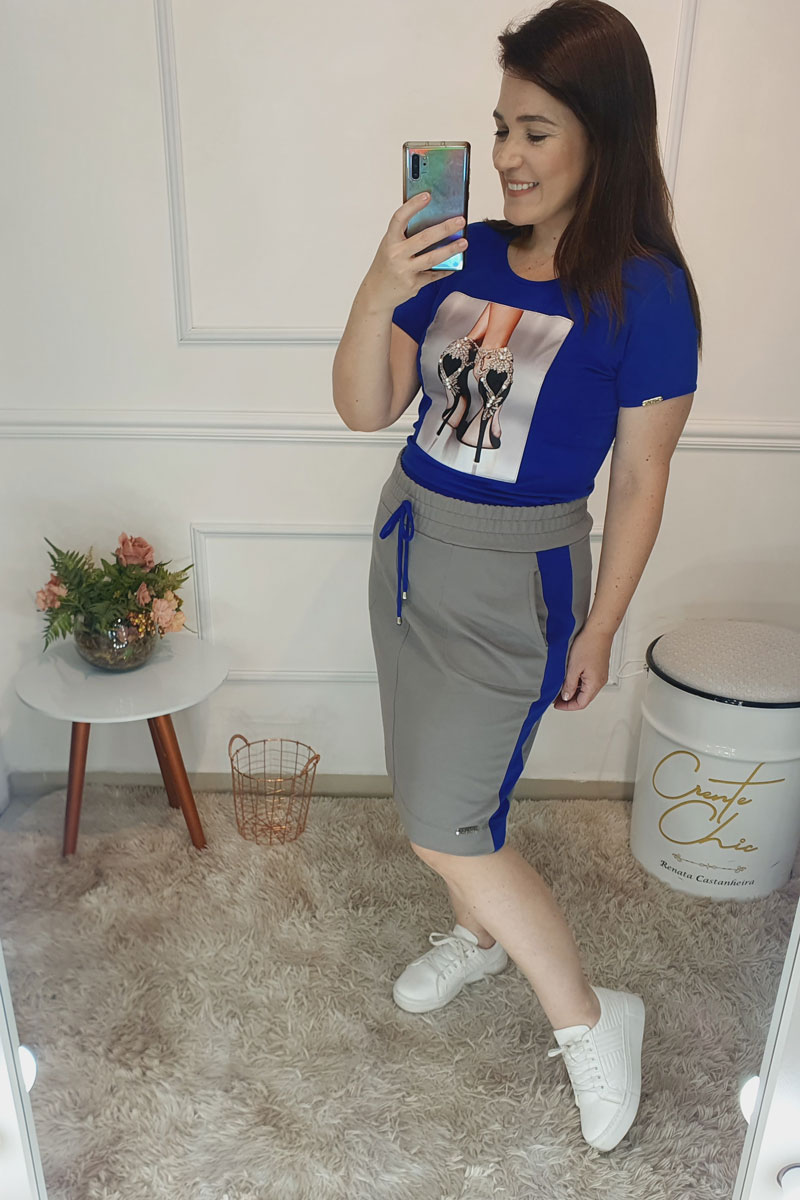 Cor: Cinza C/Detalhe Azul Royal