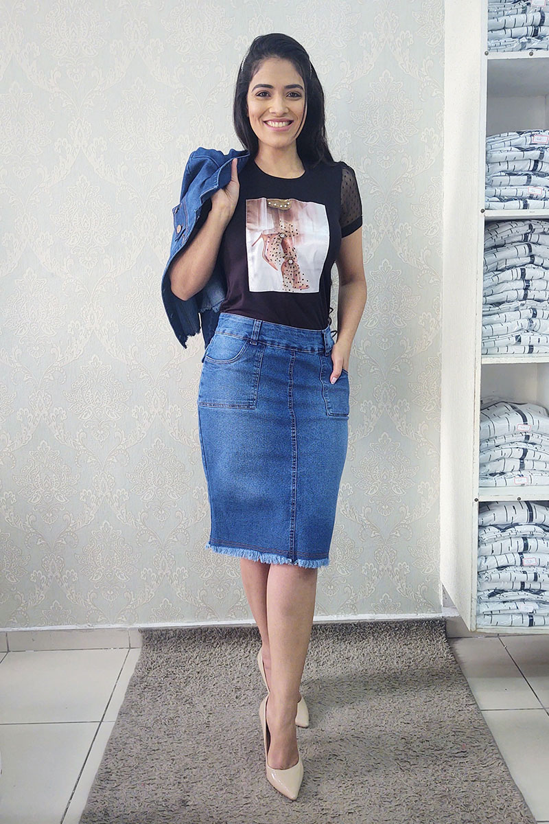 31287 Saia Jeans RetaTecido: Jeans C/ ElastanoComposição: 72% Algodão, 27% Poliéster e 02% ElastanoC..