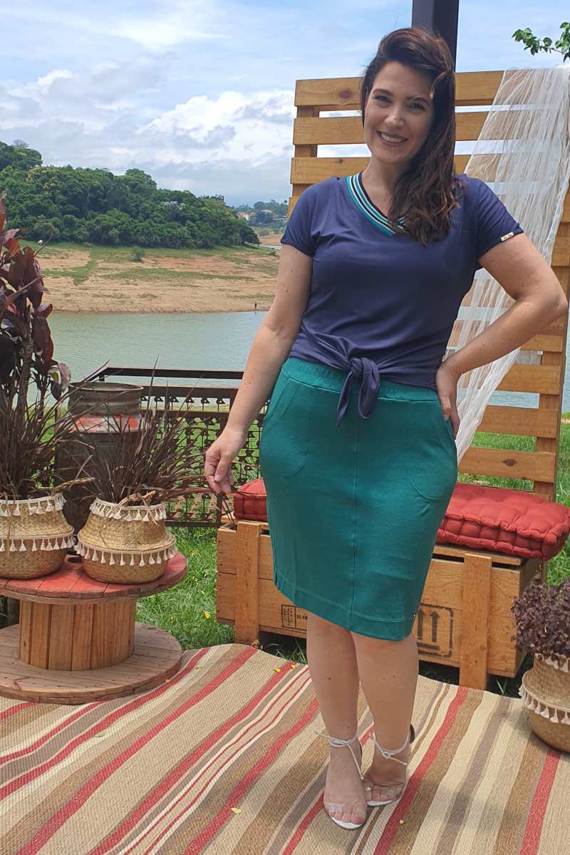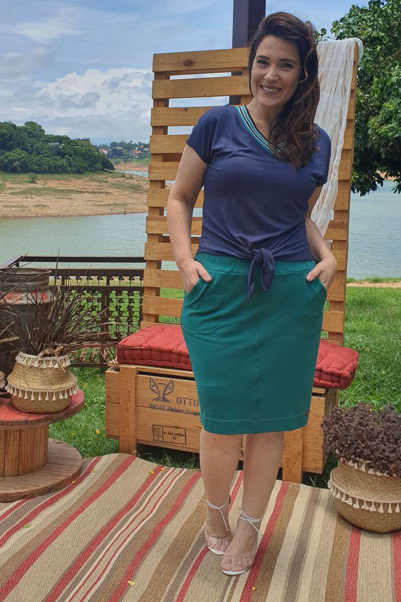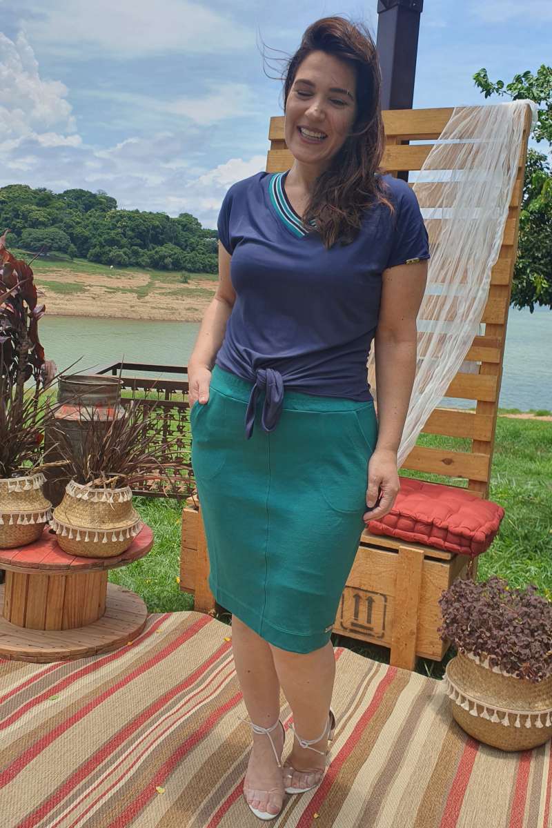 9160 Saia C/ BolsosTecido: Ponto Roma C/ ViscoseComposição: 57,5% Viscose, 32% Poliéster e 10,5% Ela..