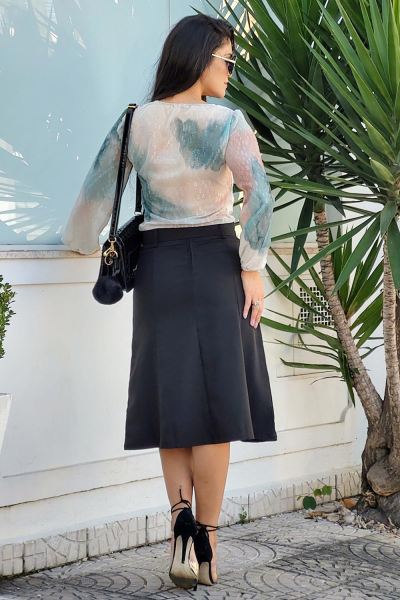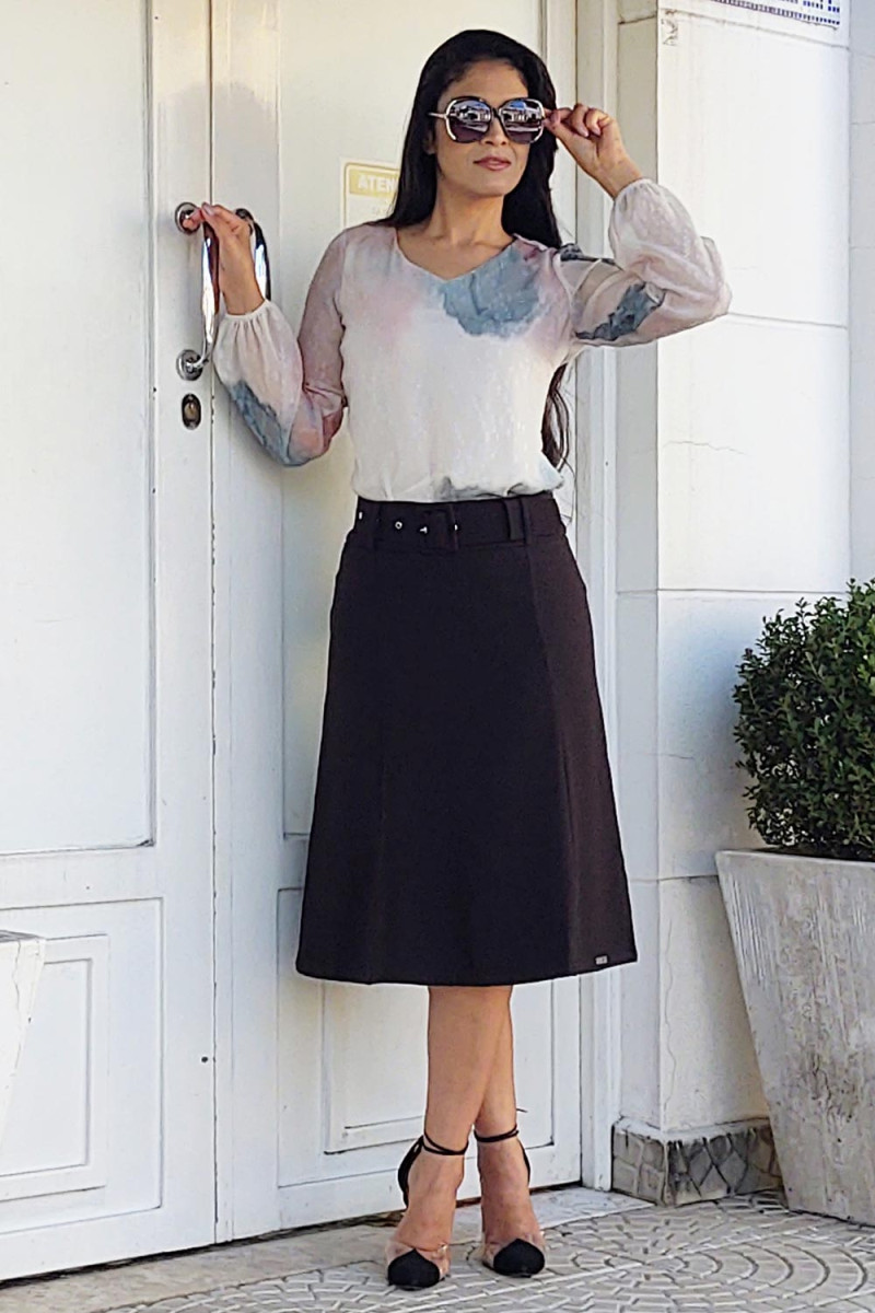9364 Saia Evase C/Recortes e Cinto