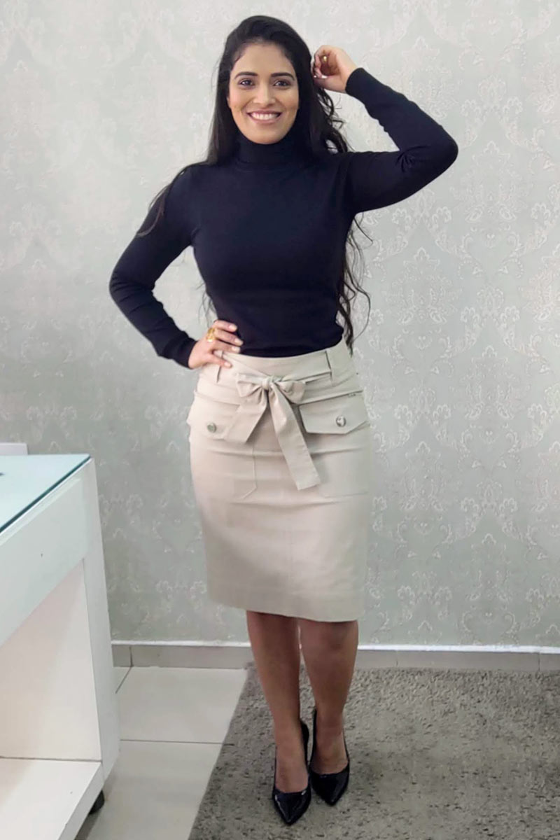 9203 Saia C/BolsosTecido: Sarja C/ElastanoComposição: 98% Algodão e 02% ElastanoComprimento +/- 60 C..